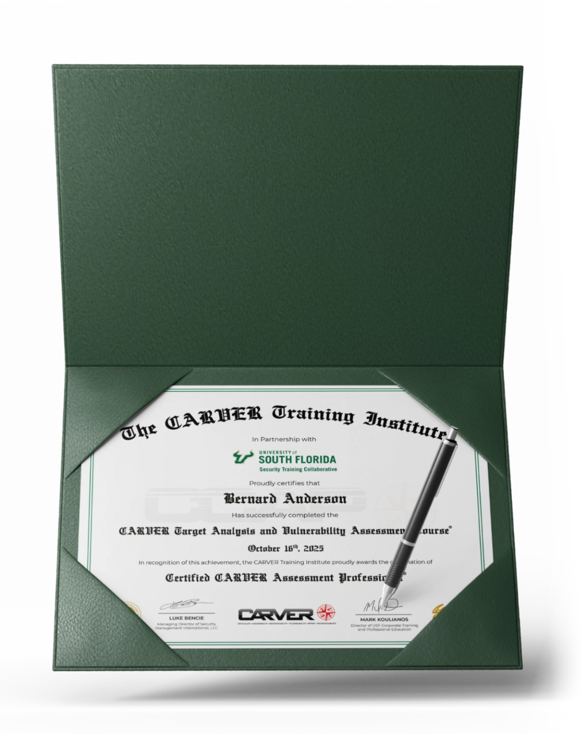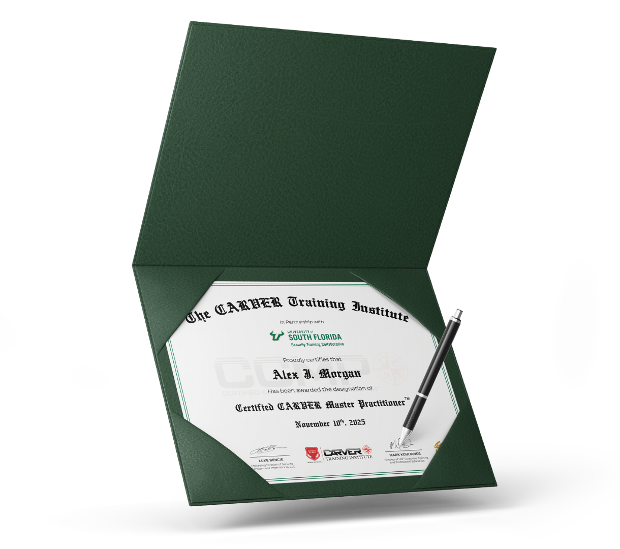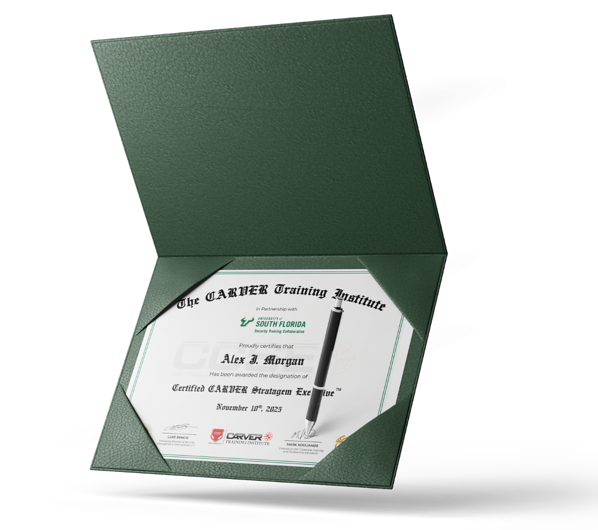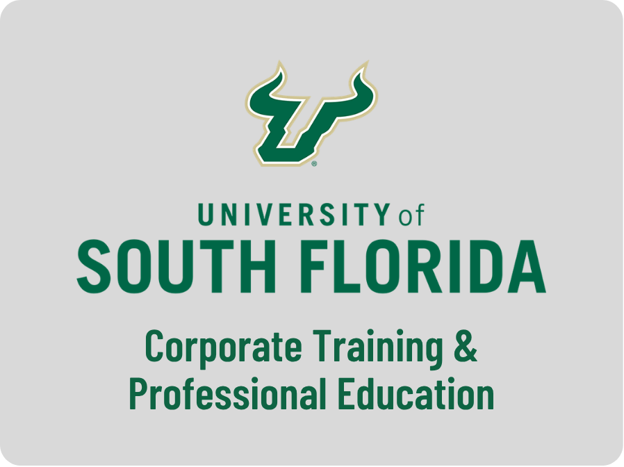 Both certifications are issued in partnership with the University of South Florida Office of Corporate Training and Professional Education, a leading global institution in executive education.